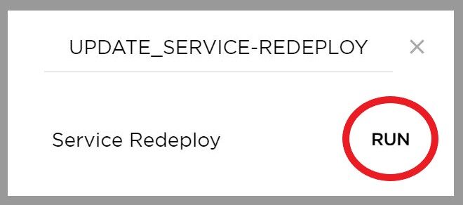 Select ‘UPDATE_SERVICE-REDEPLOY’, click ‘Run’, and allow routine to complete