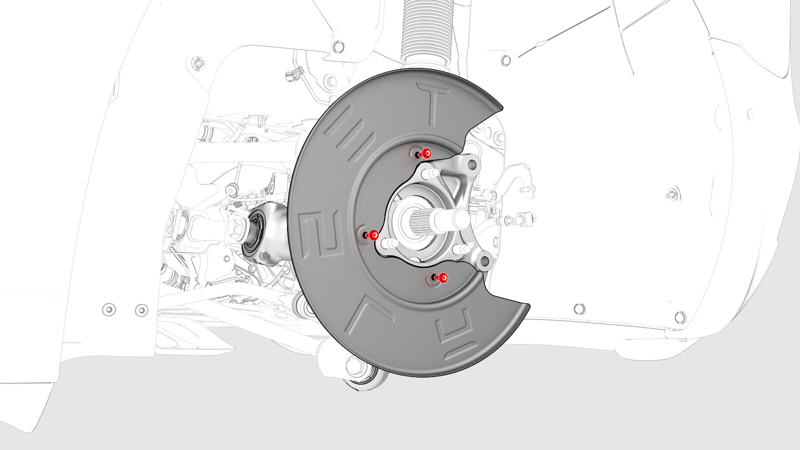 Remove the bolts that attach the LH rear brake dust shield to the knuckle, and then remove the dust shield from the vehicle.
