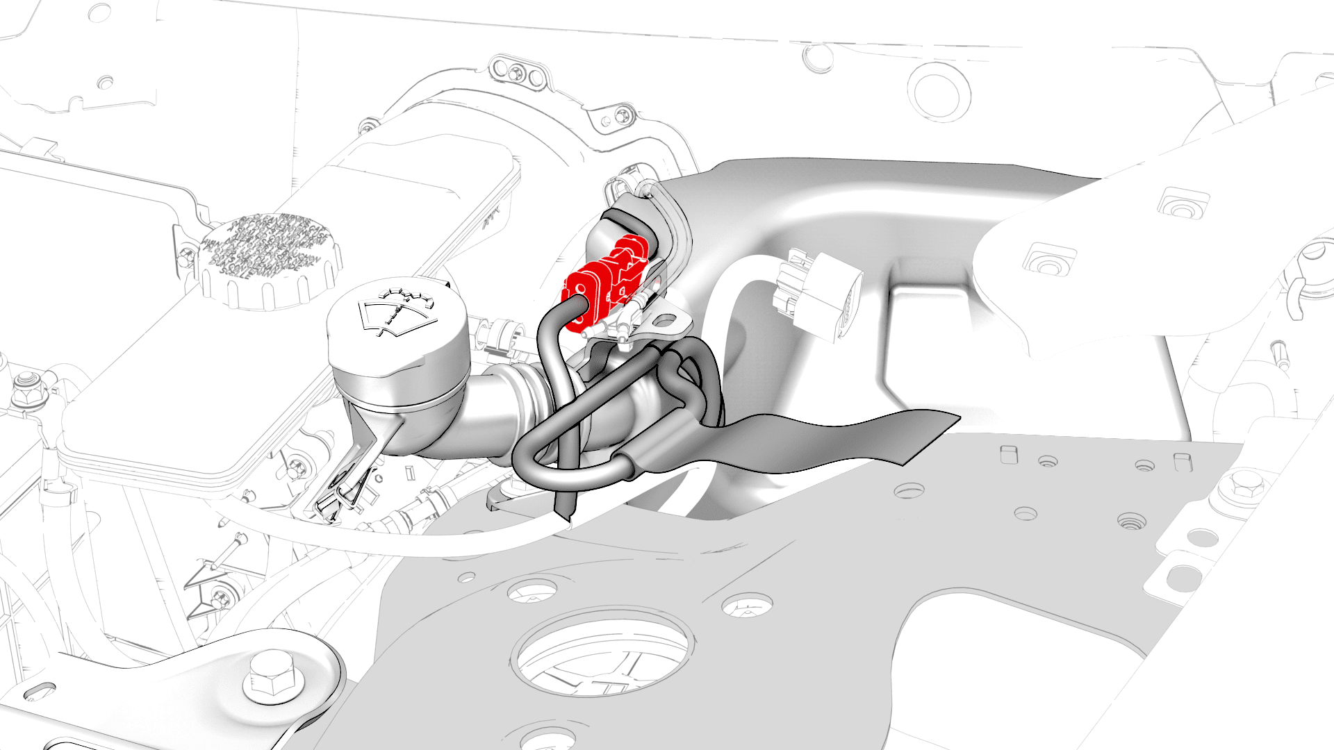 - Release the clip that attaches the electrical harness to the windshield washer reservoir.