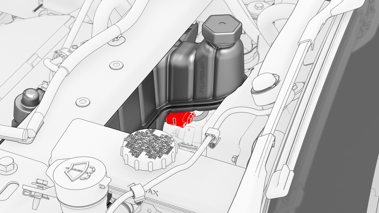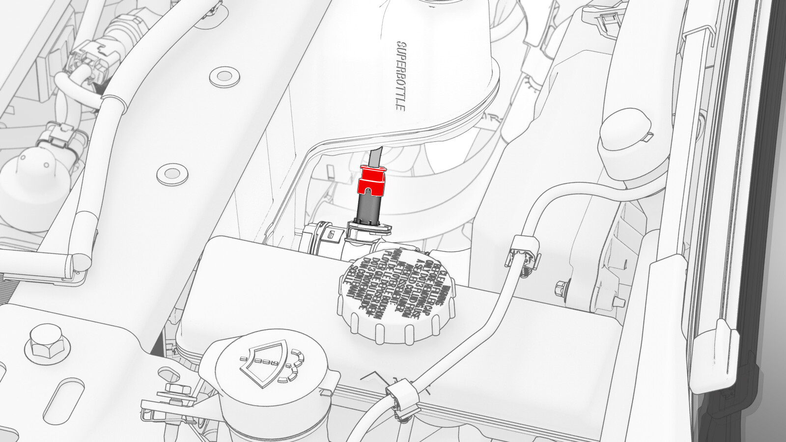 Connect the thermal beam electrical harness to the superbottle level sensor connector.