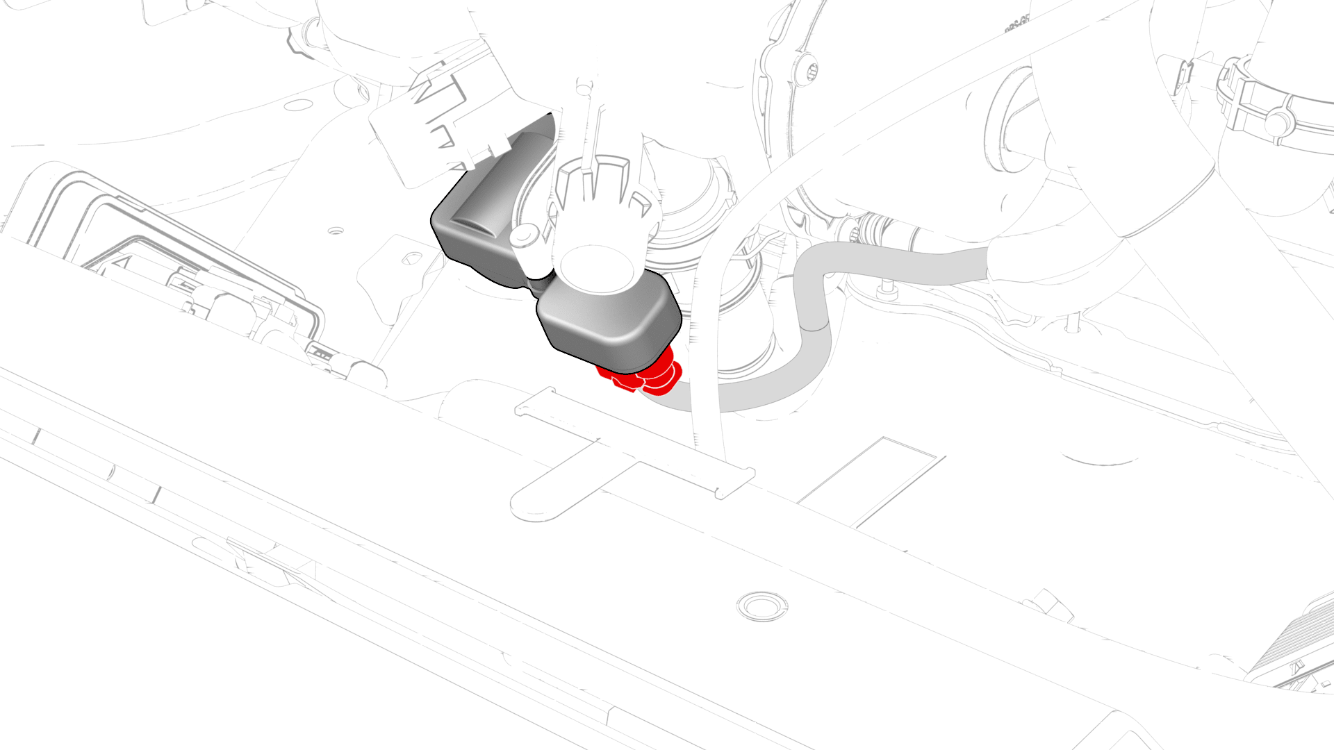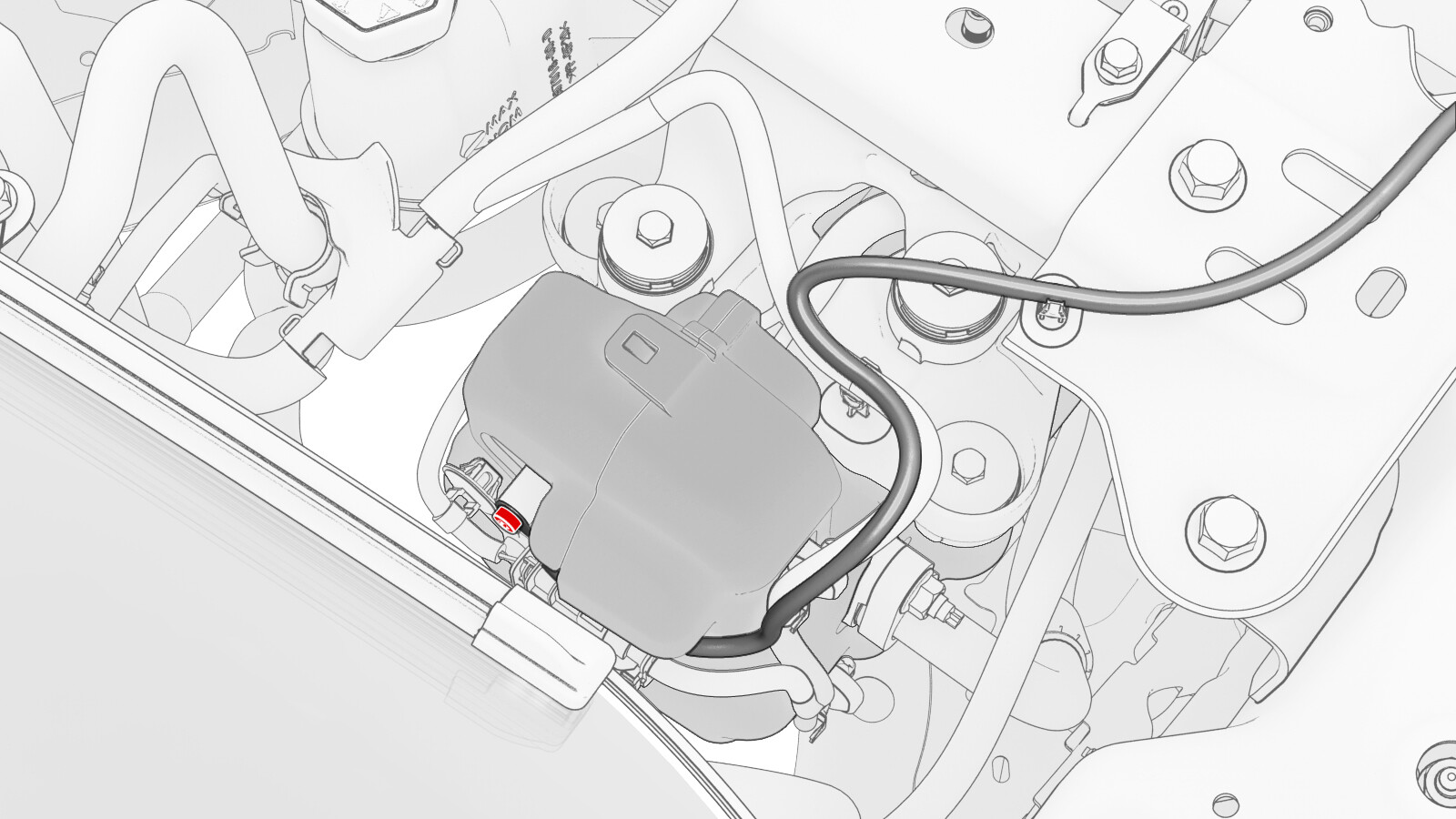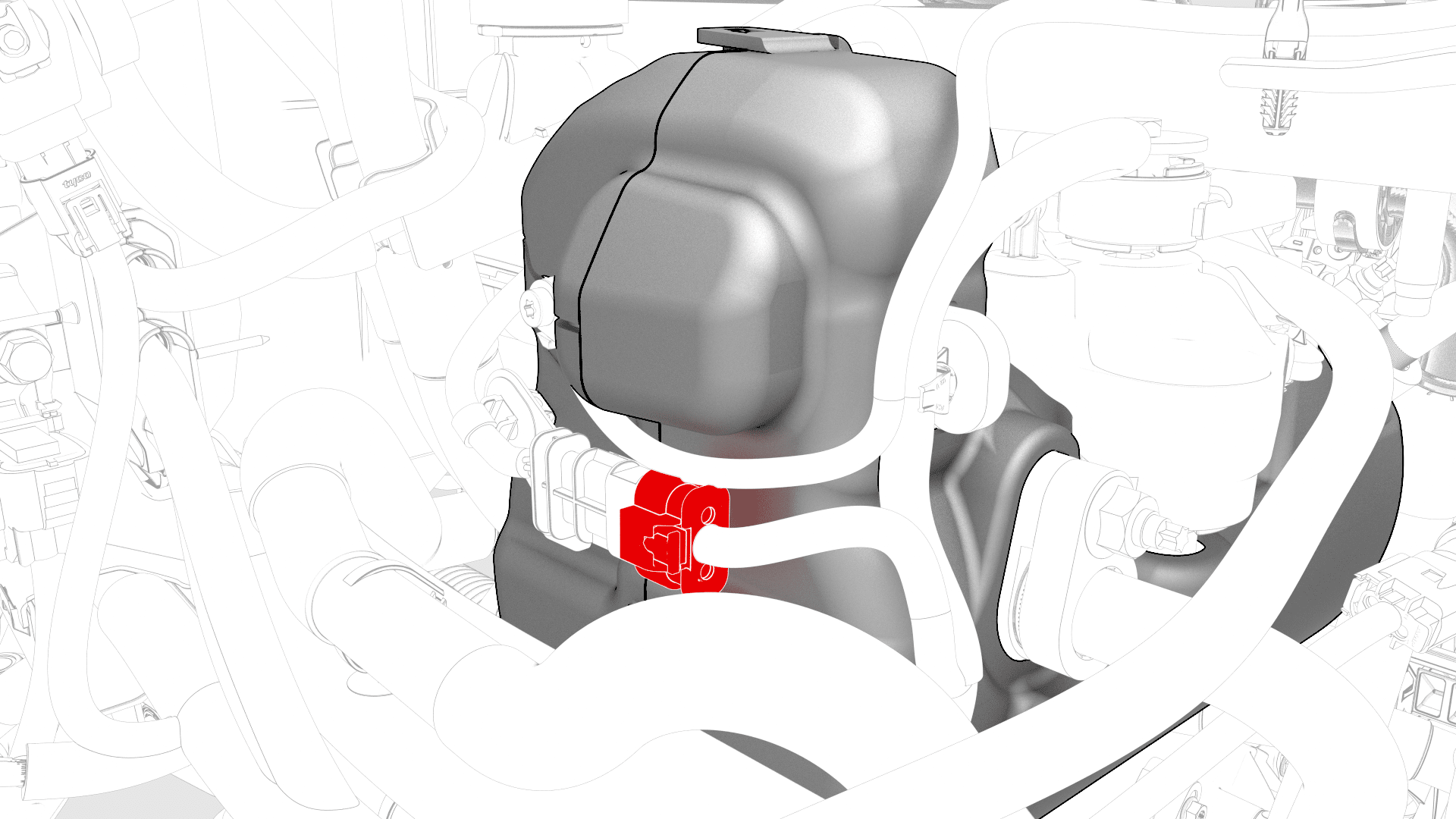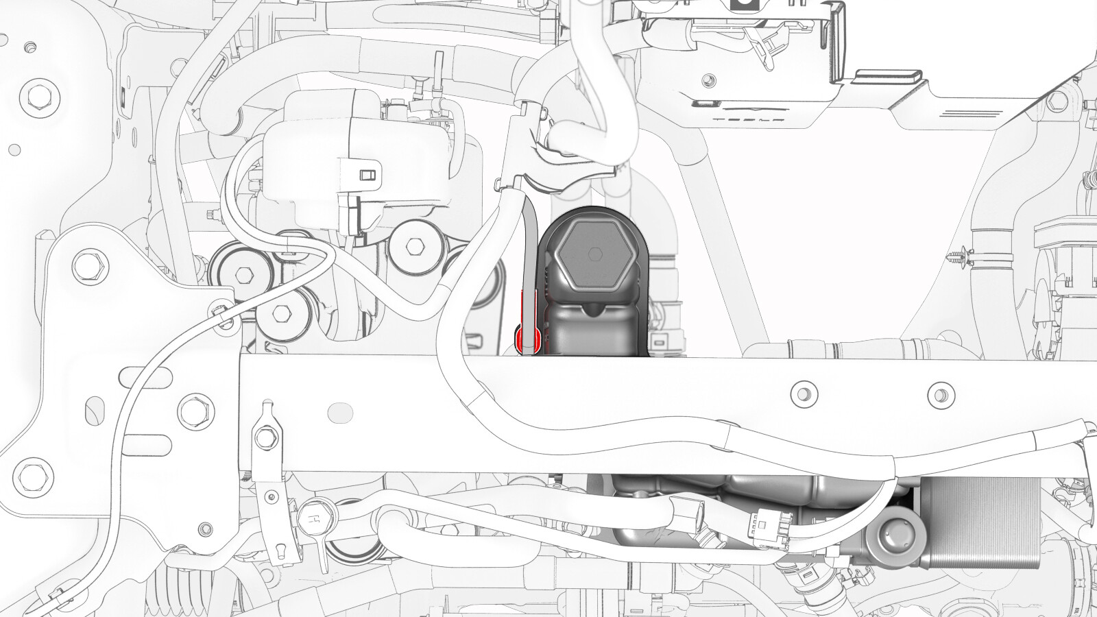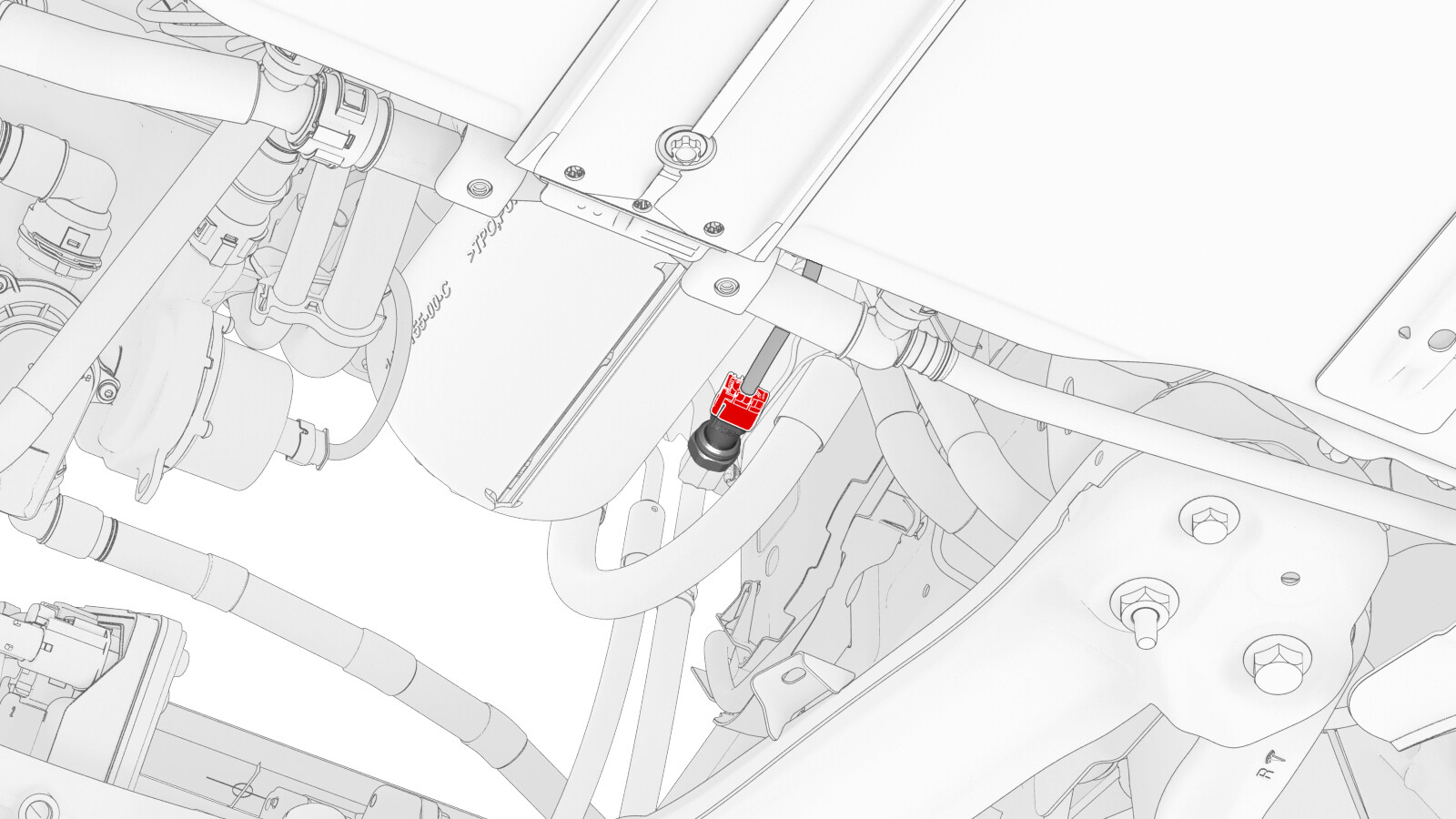 Disconnect the thermal beam electrical harness from the powertrain pump to sill hose coolant temperature sensor connector.