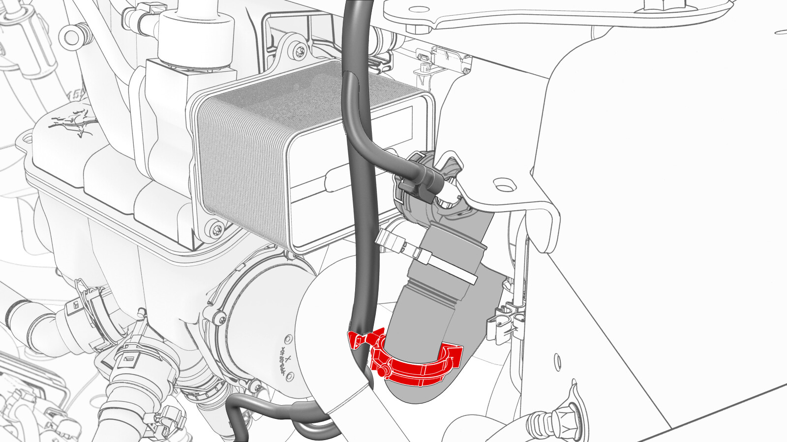 Disconnect the thermal beam electrical harness from the powertrain coolant pump connector.