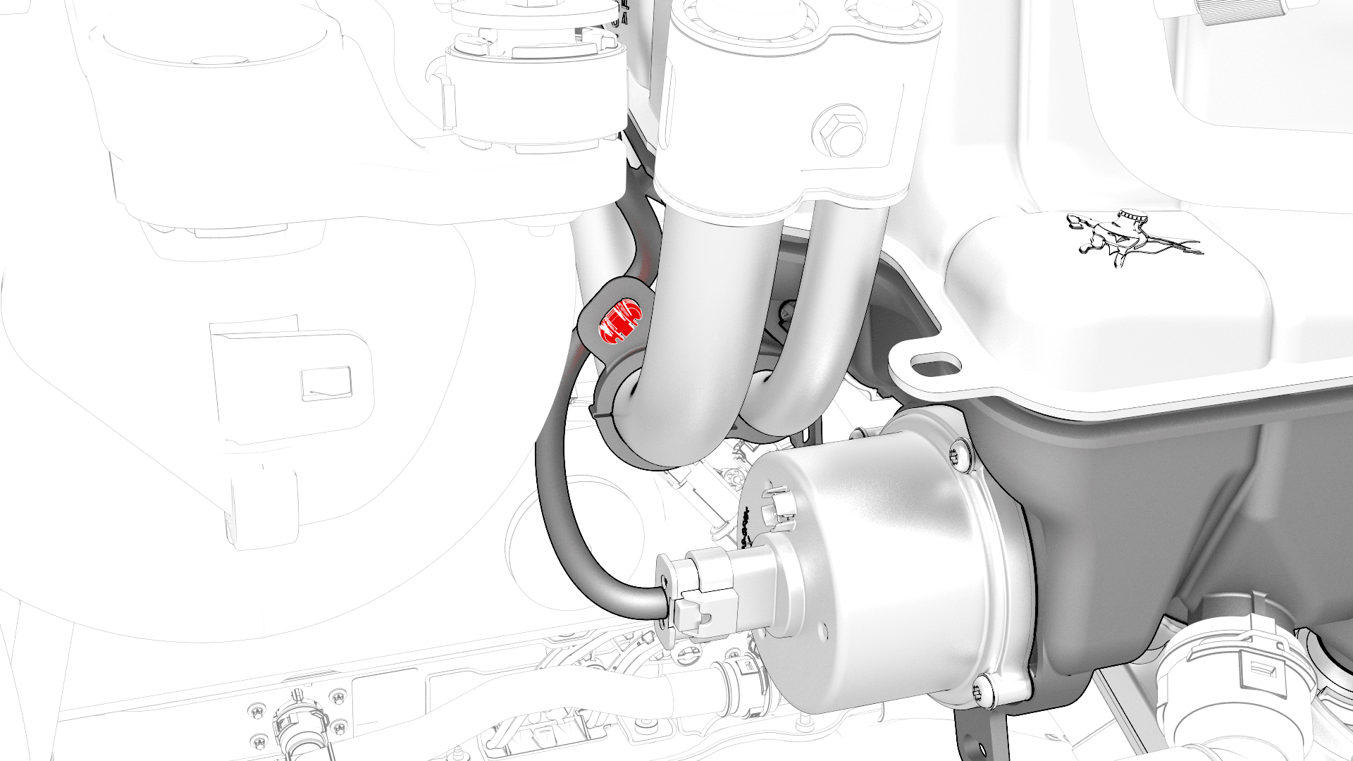 Connect the thermal beam electrical harness to the powertrain coolant pump connector.