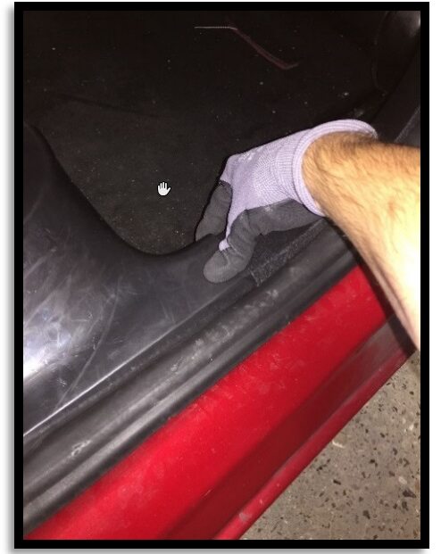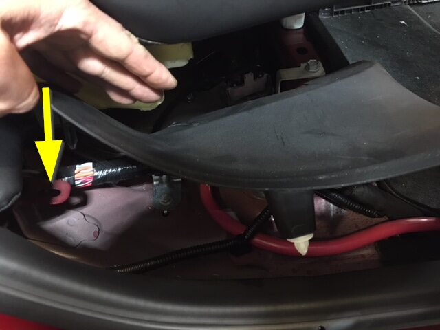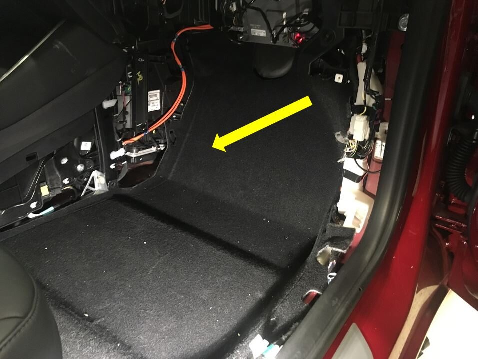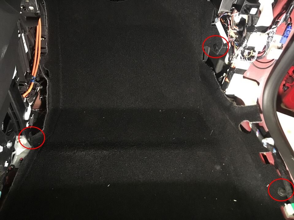 NoteDead pedal and foam block are part of carpet, Release seat harness from clip to allow the carpet to fold back more