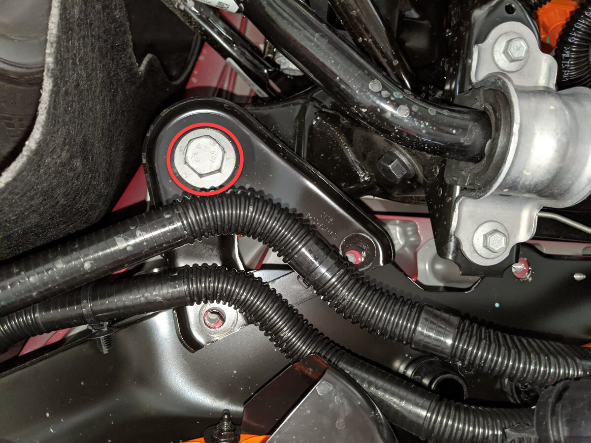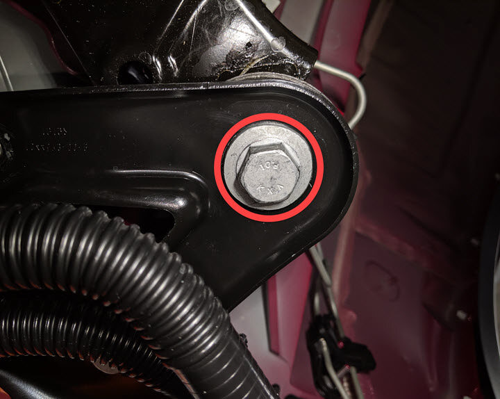 Note1x bolt, 16mm, 66 Nm, Lift up carpet for access