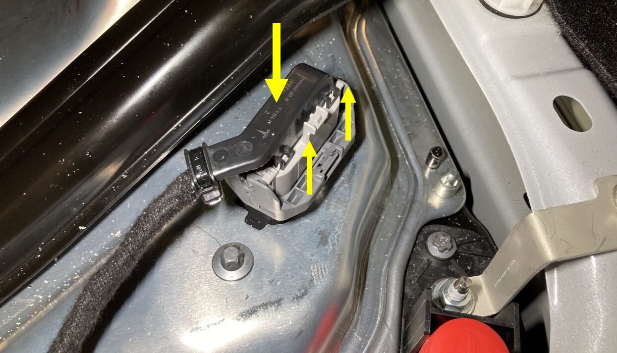 Note3x tabs, 1x Ethernet connector, 1x puddle light connector, APAC specific vehicles have an additional OBDII connector that will have to be disconnected