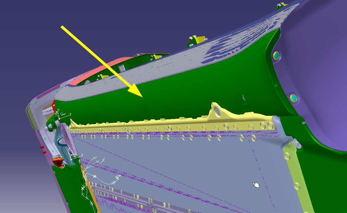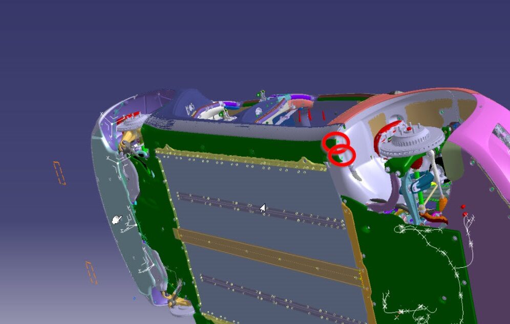 Install connectors to LH footwell cover and position for installation, securing front tabs to driver air bag assembly