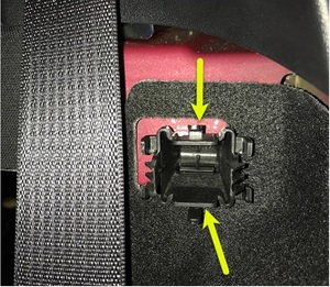 Note2x tabs, 2x connectors, Slide locking tabs to left of vehicle while lifting up seat bench. Newer models have connectors on both sides of bench, Older models have 2x connectors on one side of bench