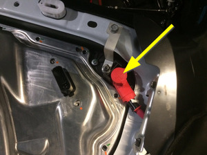 Note1x clip, 2 guide tabs, Align 2 front tabs then align slot with harness bracket and then push rear clip to secure to lower B-pillar