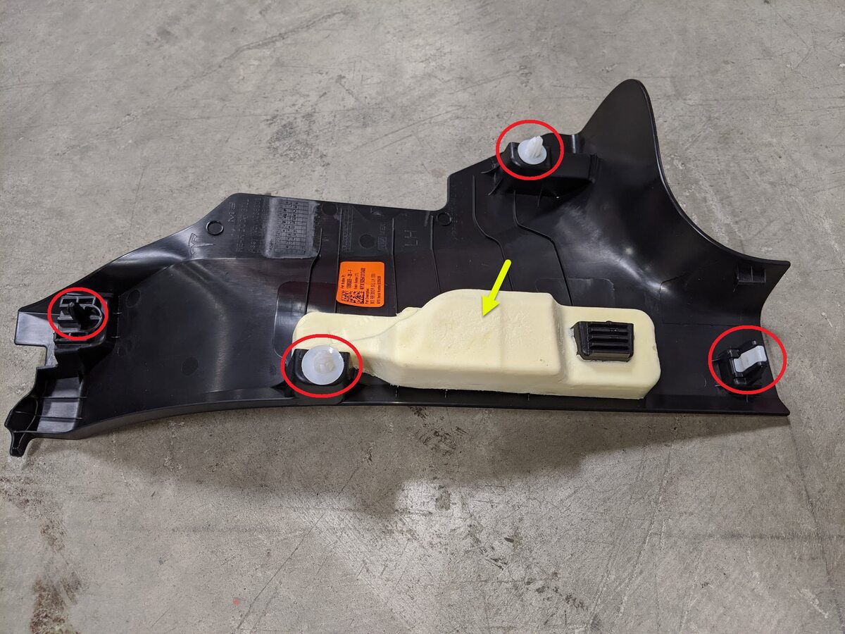Note1x clip, 1x tab, Release the upper clip then pull mid A-pillar upward to remove