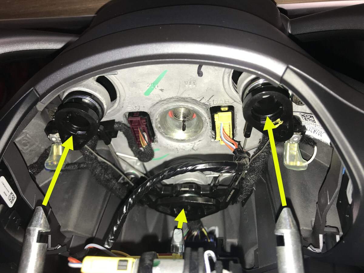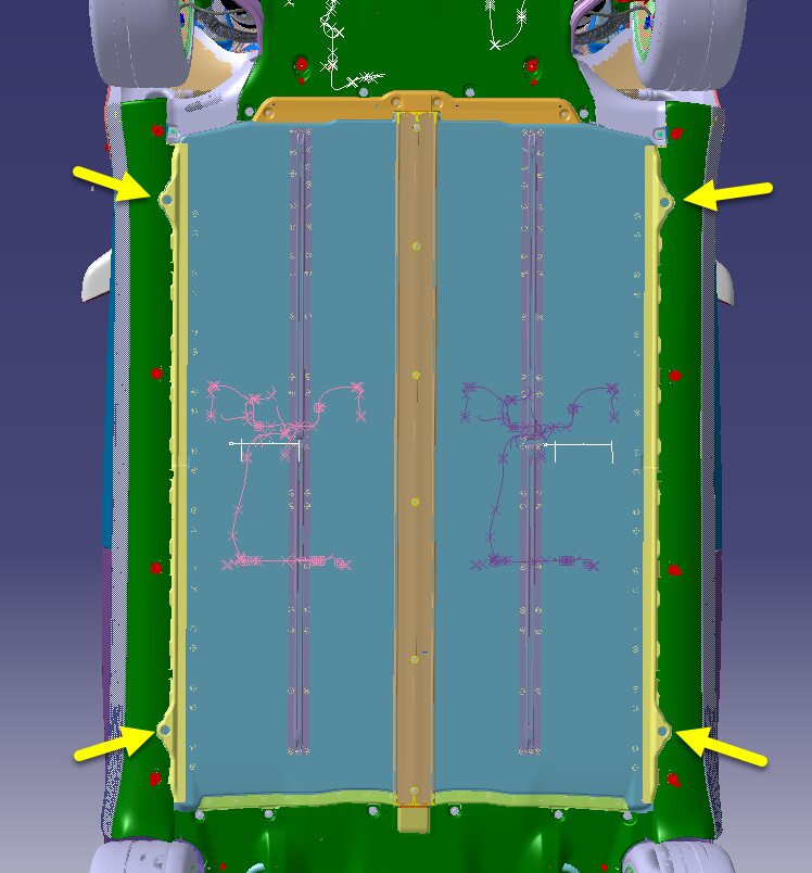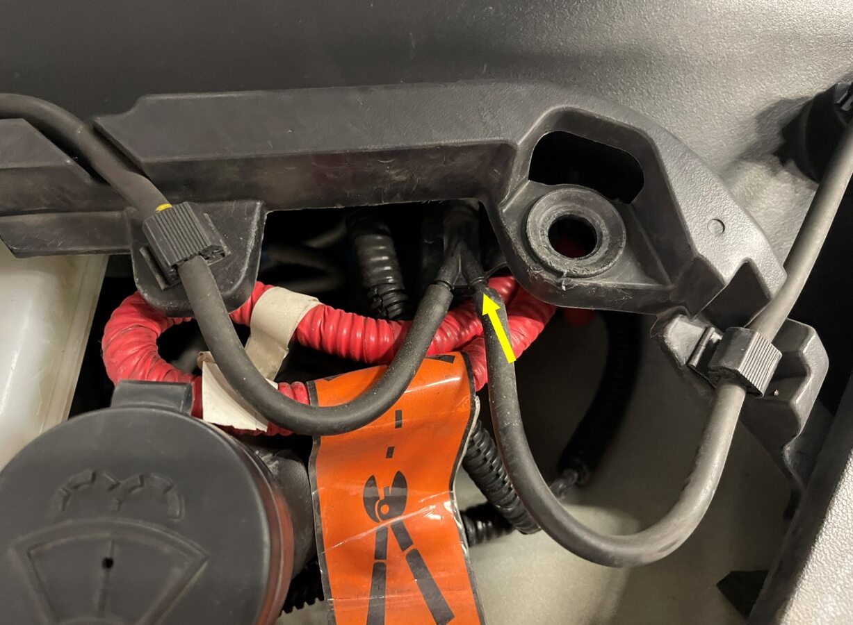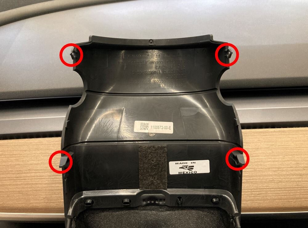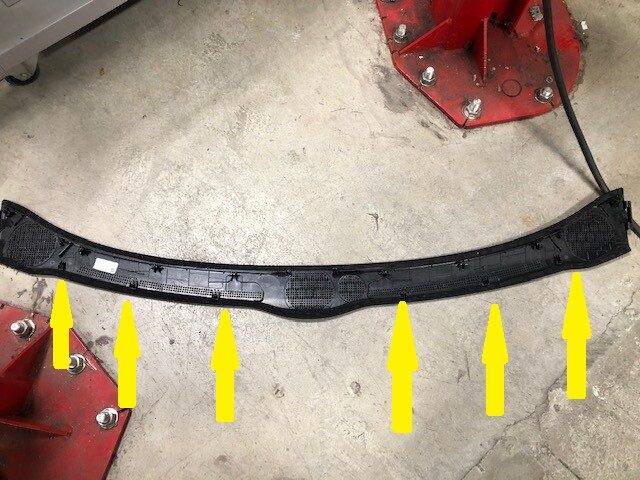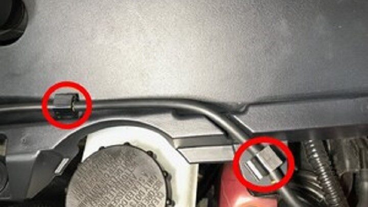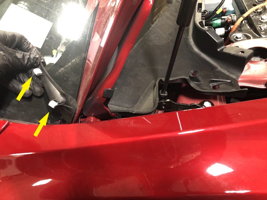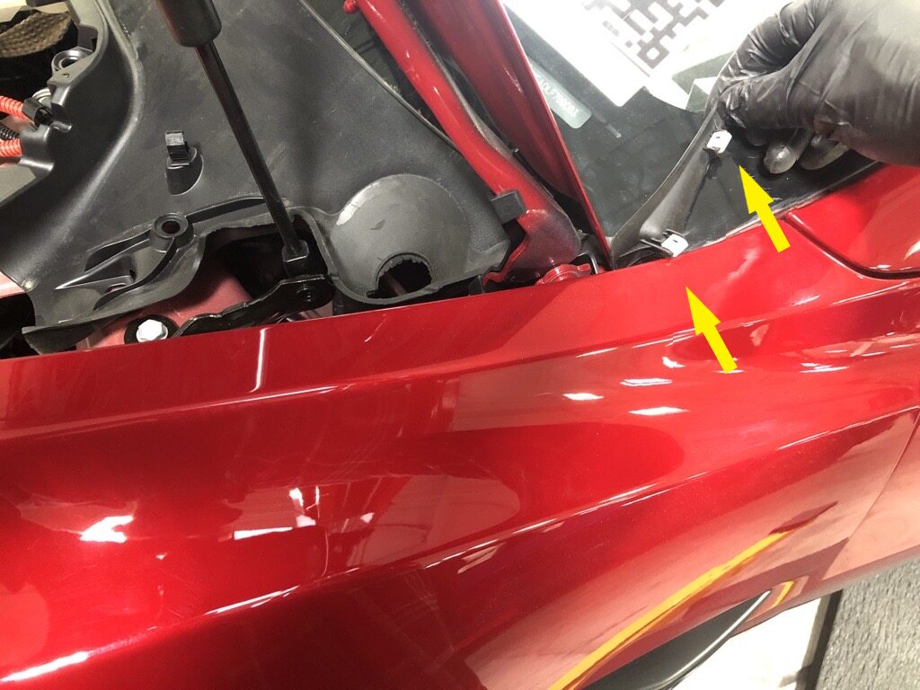 Note4x clips, 1x connector, Frunk safety switch, 3x guide tabs, Align 3x tabs then push downward to secure clips