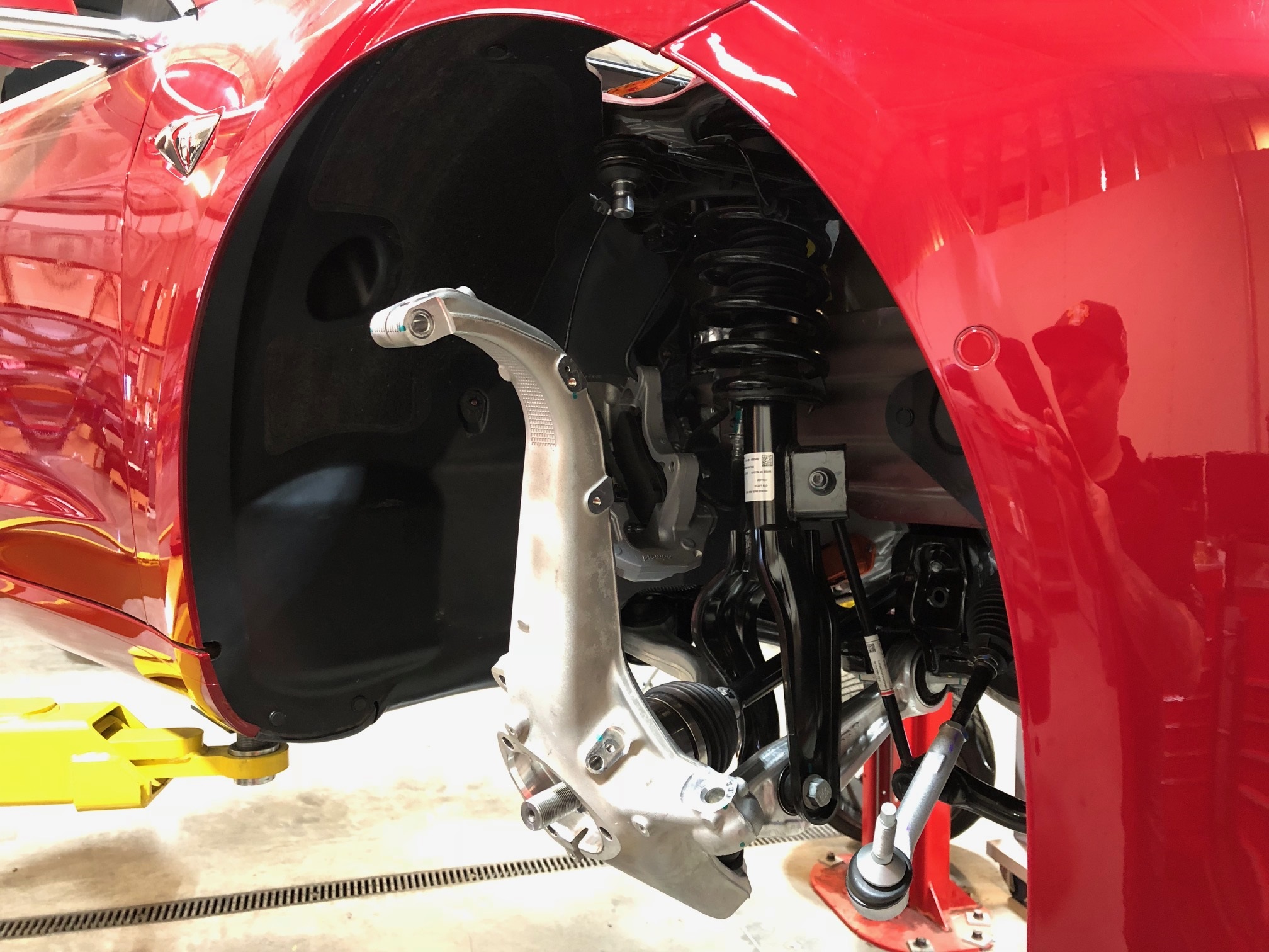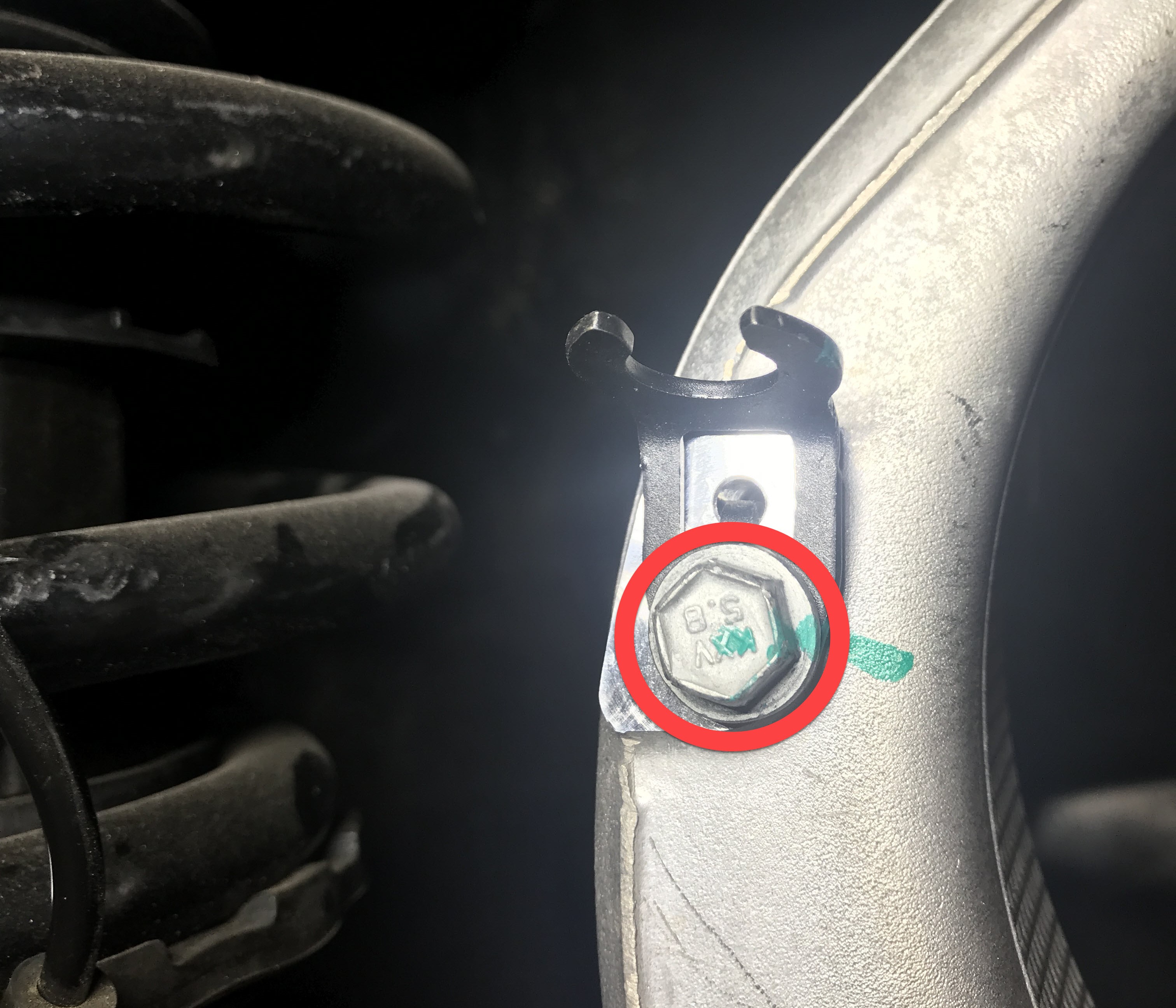 Retire el perno y la tuerca que fijan el brazo de control superior izquierdo a la mangueta de la suspensión delantera izquierda.