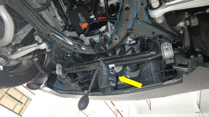 - 2025-11-10: Se instala una bolsa inflable entre la barra estabilizadora delantera y la faldilla delantera para ofrecer suficiente espacio de trabajo, lo que evita tener que retirar la faldilla delantera por completo.