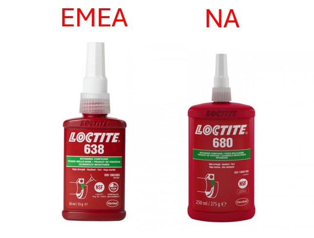 RemarqueUse the region specific Loctite. For EMEA: Loctite 638. For North America: Loctite 680RemarqueTake care not to apply loctite on the rubber sealsATTENTIONAllow 30 minutes curing time for Loctite. Continue this procedure, but do not drive the vehicle during the 30 minute curing time.