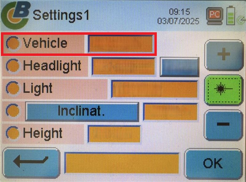 Select Headlight (LHD or RHD option) on the headlight aimer: