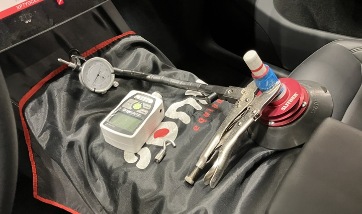 - Remove the brake rotor run out tool from the LH front window and the steering wheel.