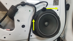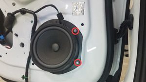Install the bolts (x4) that attach the LH rear door speaker to the LH rear door.