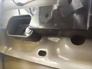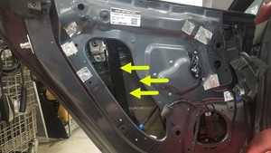 opening in the LH rear door to access the LH rear regulator mounting guide.