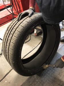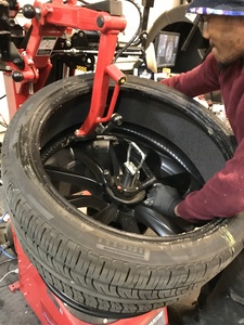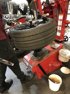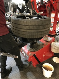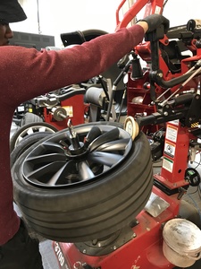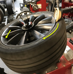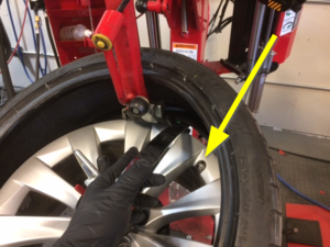 NoteMake sure to position the TPMS sensor opposite the tire machine arm. If the tire has "outside", "side facing outwards", or a direction of rotation arrow on the sidewall, ensure that the tire is oriented properly