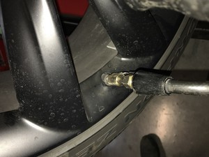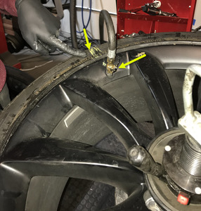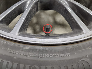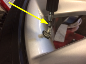 Rotate tire and wheel so that upper roller is 100mm in front of the valve