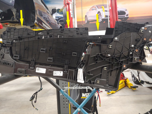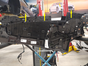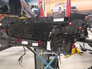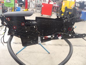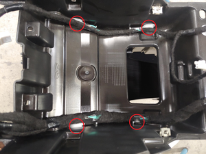 into the center console frame, and then secure the clips (x14) that attach the harness