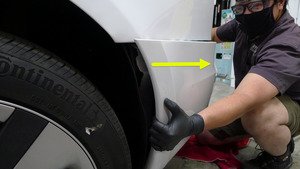 the LH rear wheel arch liner to the rear fascia, and then move the liner to the side for
