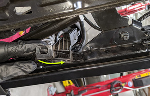 NoteSlide the light towards the front of the LH seat rail. Position the opposite end, and then slide the light towards the rear of the driver seat rail to engage the locking tab.