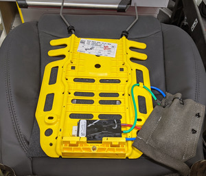 - With assistance, place the driver seat on a protected surface so that the underside of the seat can be accessed.