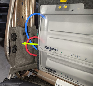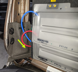 electrical connector, and then release clip that attaches the harness to the driver seat