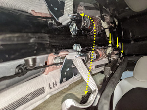 - Use the loop to support the headliner during installation. If the loop is too loose, tie an additional knot to reduce slack.