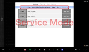 Place vehicle in service mode with touchscreen