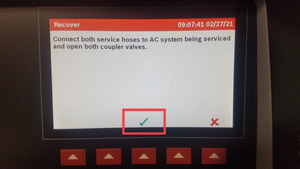 Connect hoses to vehicle and perform A/C recovery