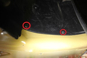 Apply Loctite 222 onto front aero shield bolts and install fasteners securing front aero shield to vehicle
