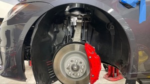 Remove bolts securing front skid plate to front subframe and remove skid plate