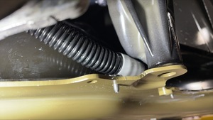 NoteCarefully maneuver hose in between HV battery and vehicle body, Note orientation of the hose during install