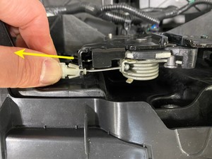 NoteMake sure the tabs are fully engaged onto the hood latch assembly.