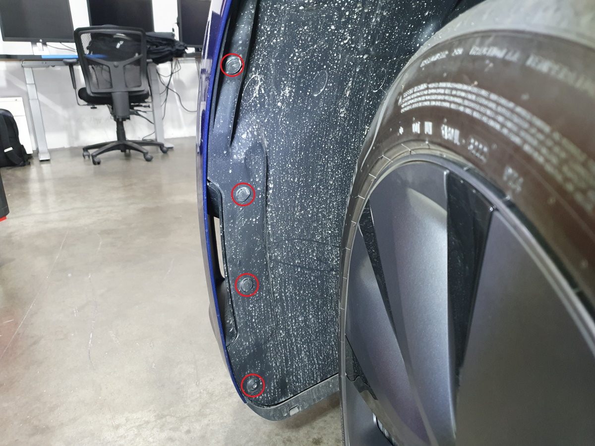 NoteNewer vehicles have a T30 bolt (torque 2 Nm) at the lower front corner of the wheel arch liner that must also be removed.