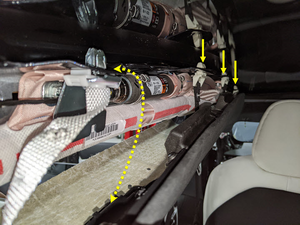 NoteRoute the harness back towards the driver side.NoteSecure the locking tabs.NoteUse tooling to help secure the clips as required.