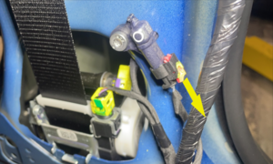NoteDisengage the locking tabs.NoteRoute the harness back towards the driver side.