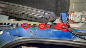NoteDisengage the red locking tab.NoteRoute the harness back towards the driver side.