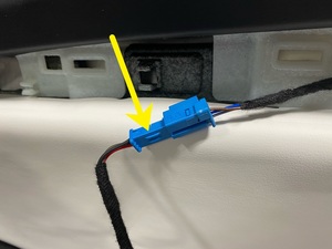 2. Release the clips (x7) and hook that attach the LH front door trim decor to the LH front door panel, and then disconnect the electrical connector to remove the decor from the panel.