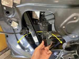 - Remove the LH front window regulator from the door assembly. See Window Motor/Regulator Assembly - Front - LH (Remove and Replace).