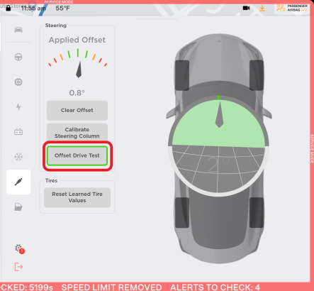 Tires > Offset Drive Test > Run, and then drive the vehicle in a