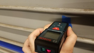 Project a laser perpendicular to the wall onto the center point of the vehicle, then mark a center-line on the wall.