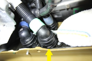 NoteRemove coolant hose clamps from car computer supply hose, Ensure plugs are secure and leak free, Guide hoses between HVAC assembly and bulkhead.