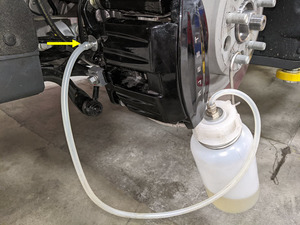 Repeat the above steps untill clear fluid and no air bubbles come out of the RH front brake caliper bleeding valve