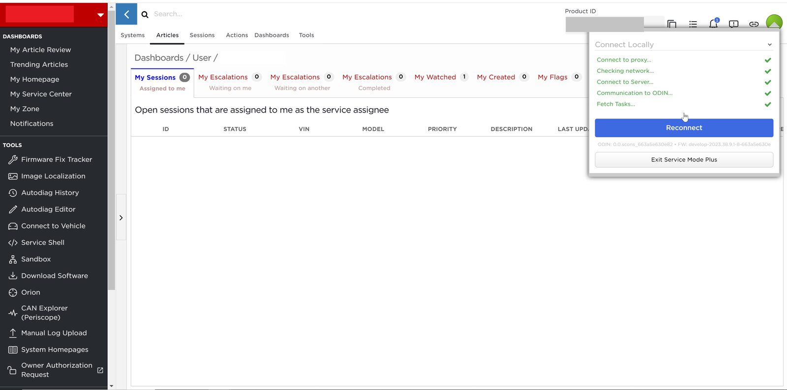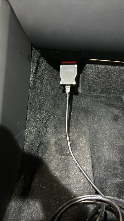 NoteNavigate to https://toolbox.teslamotors.com and establish connection to vehicle, Select connection status icon at top right corner then select connect locally, Icon will turn green when connected, Successful connection will automatically unlock vehicle gateway and place UI in Service Mode Plus, Media converter box powered by laptop USB or 12v power outlet, Ethernet connection will provide communication, If RJ45 ethernet connector present at service panel media converter box not required, Vehicles built 4/5/2024 onwards have OBDII connection integrated into drivers lower IP cover, Use OBDII connection if this applies, Some vehicles may have both RJ45 and OBDII, If vehicle has both RJ45 and OBD-II then connect via RJ45, For local connection issues with Toolbox refer to https://toolbox.teslamotors.com/articles/43695