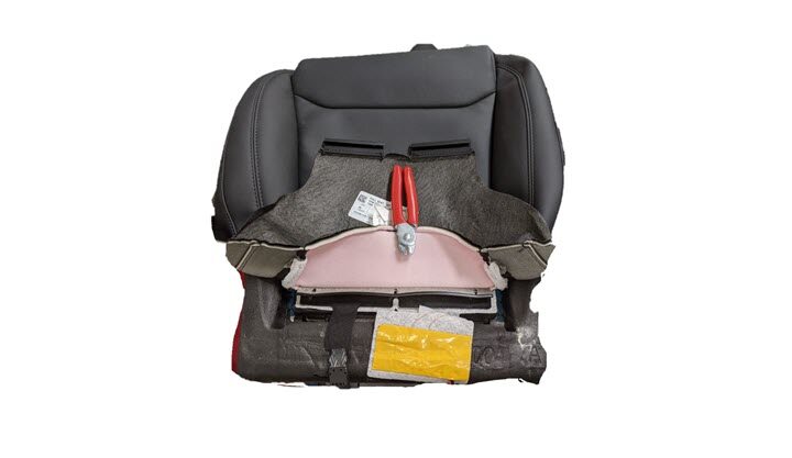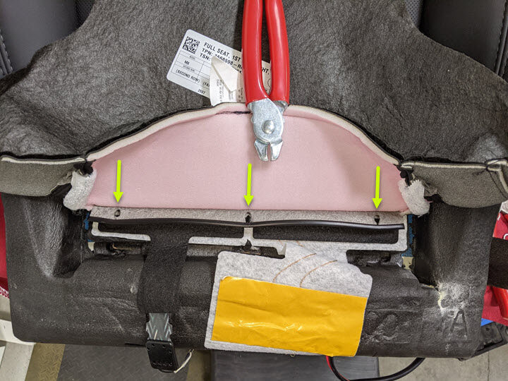 NoteFeed trim between seat back trim and seat frame, Maneuver seat assembly as needed for access