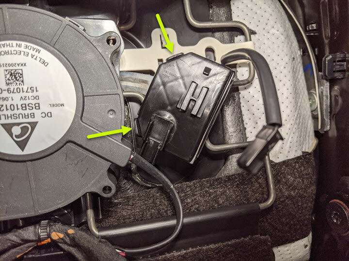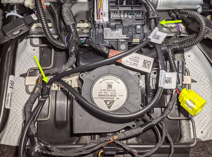 Attach FSC/FSB vent heat pad harnesses into plastic brackets