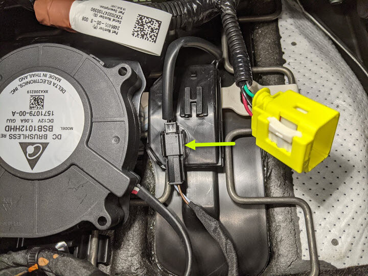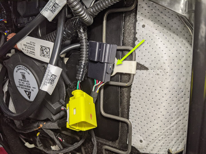 Note2x connectors Secure FRL first, Seat LV battery connection and push black connector lock inwards to secure, Engage green locking tab when fully seated